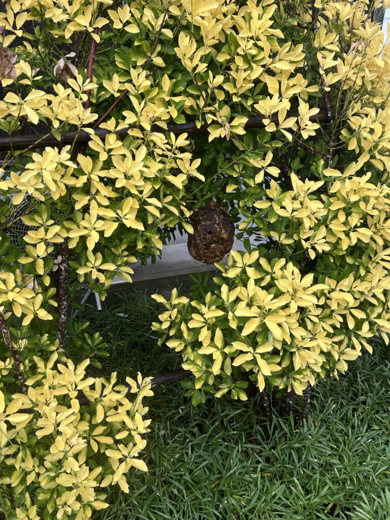 273月 大川市スズメバチの巣駆除 by tateyama スズメバチ駆除, 害虫駆除, 蜂の巣駆除 大川市スズメバチの巣駆除 大川市スズメバチの巣駆除のご依頼ありがとうございました。庭木にスズメバチが巣を作っていました。庭木などはどうしても蜂が隠れやすいので蜂の巣駆除のご依頼の中でも多いご依頼です。草刈り中や庭木の剪定を行う際には細心の注意が必要です。草刈り等を行う前に市販の駆除スプレーで蜂がいないか確認を行った上で作業するといいかと思います。この度はご依頼いただきありがとうございました。また何かお困りの際はよろしくお願いいたします。 お電話 お問い合わせ コムラグループ \ 最新情報をチェック / Bluesky スズメバチ大川市害虫駆除福岡県蜂の巣駆除