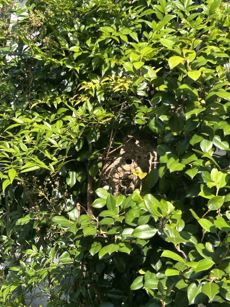 庭木にスズメバチが巣を作っていました。